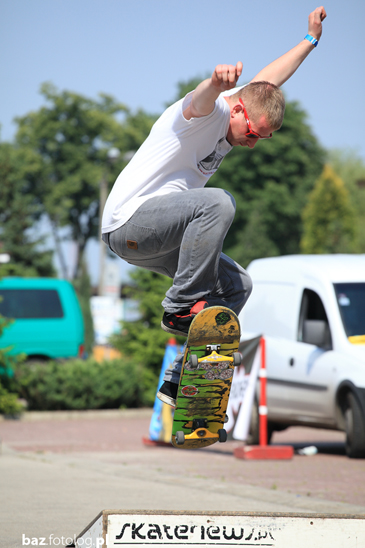 Ewidentnie trafiliśmy na jeden z najbardziej gorących dni czerwca, temperatura na słońcu dochodziła do ponad 40 stopni! Nie przeszkodziło to jednak zawodnikom których na starcie zapisało się czternastu, z czego na początek każdy (i każda – Estera Mrówka) miał przejazd po 1 min. Z czternastki zostało wyłonione 4 osoby do finału, Byli to Łukasz Cebula z Krk, Radomił Gomółka „Poziom” z Zakopanego, Maciej Trojanowski „Trodzan” z Kielc, oraz Wojciech Kiryk z Rudawy. Po zaciętej walce, komisja sędziowska w składzie: Maciej „Rzankoś” Rzankowski – Zakopiański rider, Adrian Kulisa oraz Gregu – obydwoje deskorolkowcy z Krk, uznali iż Łukasz Cebula rozwalił wszystkich swoimi trickami typu flip na grand flip out i to on zgarnął pierwszą nagrode. Drugie miejsce: Maciej Trojanowski, Trzecie natomiast przypadło Poziomowi. Dziękujemy wszystkim riderom, oraz sponsorom. Mamy nadzieje że do zobaczenia za rok!