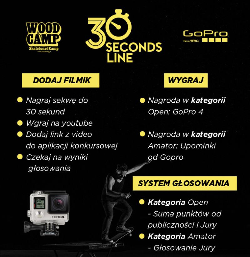 Obozy deskorolkowe Woodcamp przy współpracy z GoPro zrobili drugą edycje konkursu „30 Second Line”. Zasady są proste: